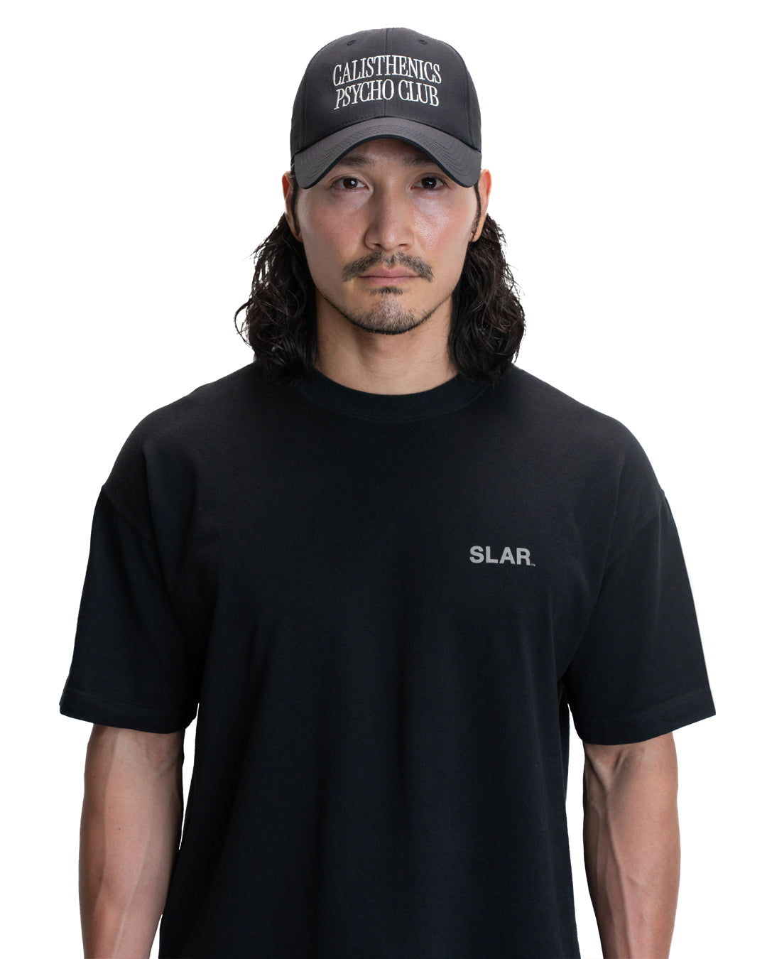 光沢を抑えたナイロン生地を使用し、SLAR チームコンセプトである“CALISTHENICS PSYCHO CLUB”の刺繍をあしらった、SLAR独自のベースボールキャップ。軽量で速乾性のある素材で、日常からトレーニングまでシームレスにフィットします。